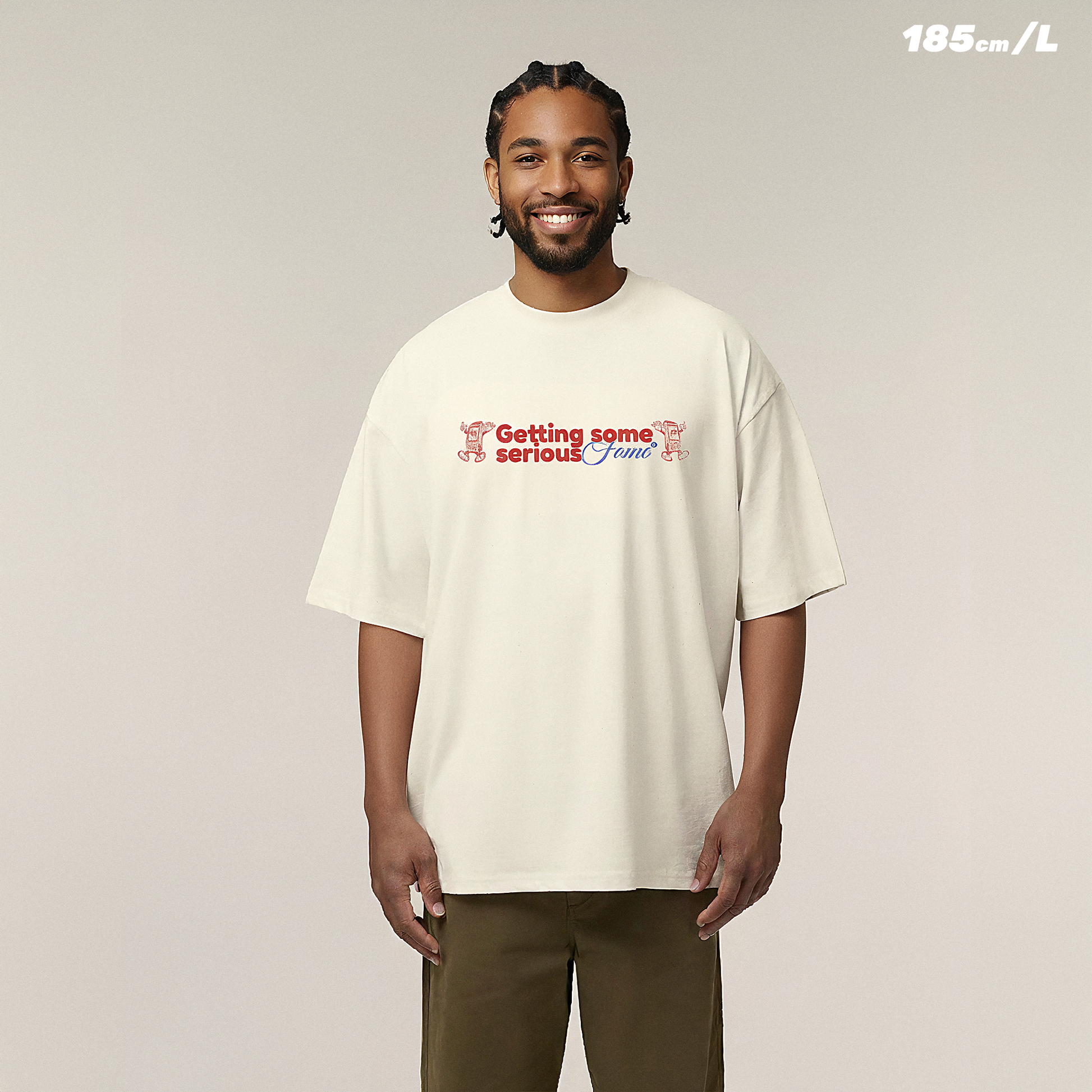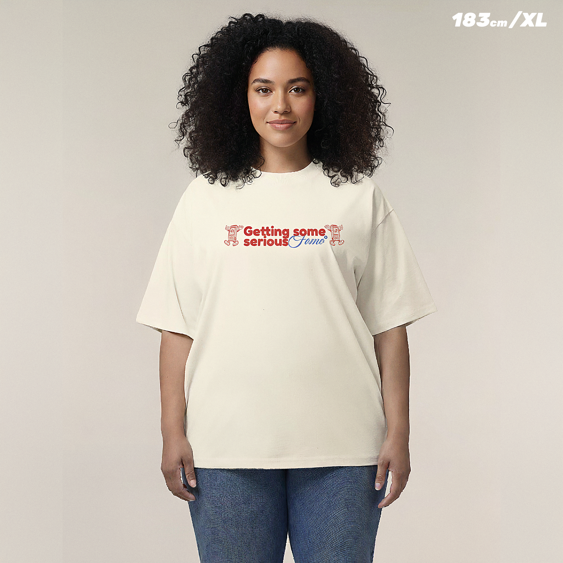 Careful! This tee has an oversized fit. For example, a man who is 185 cm tall would typically wear a size M. If you are a big man, consider choosing size L. For women, someone around 165 cm tall would usually wear size XS, though XS may also fit women up to 175 cm. Read the size guide!