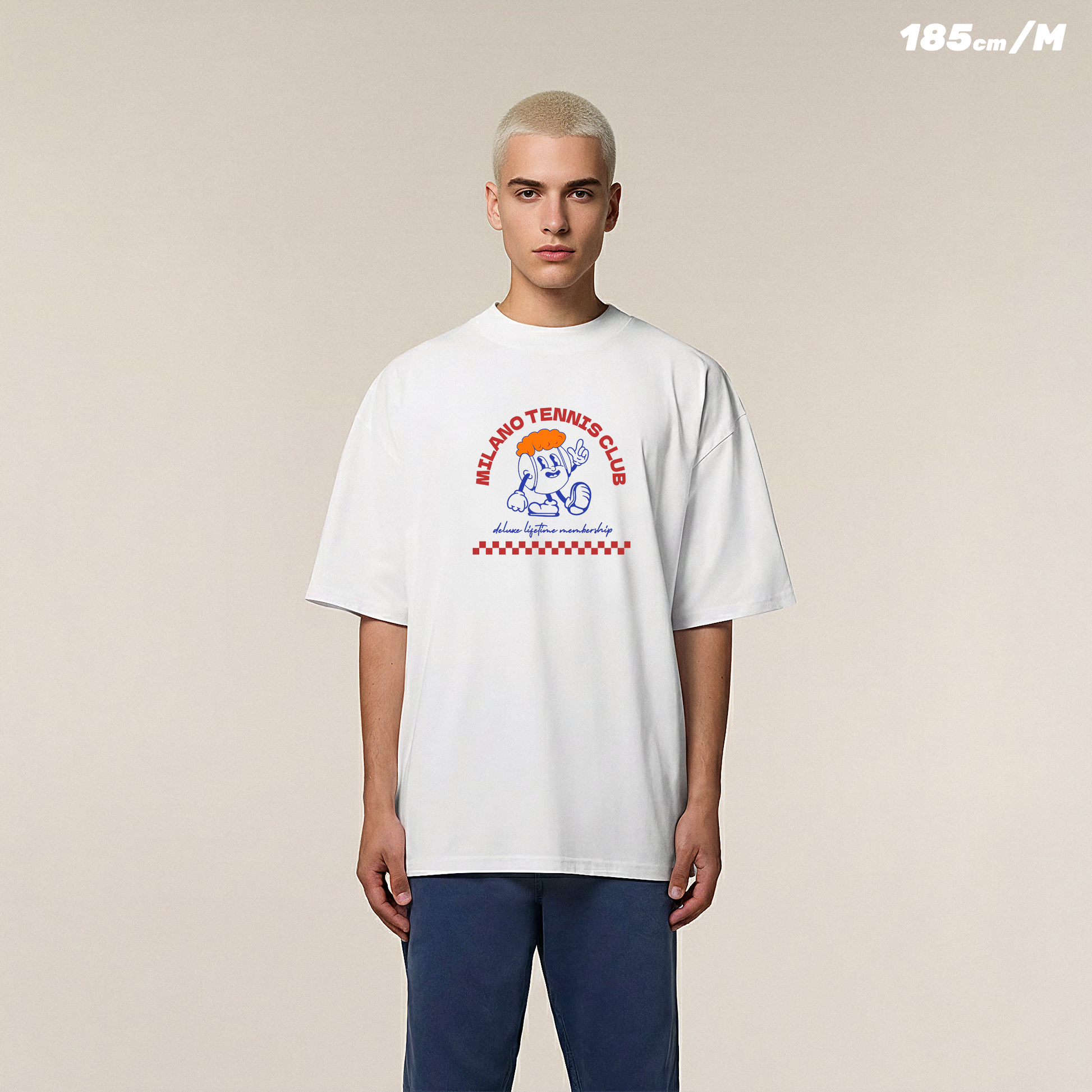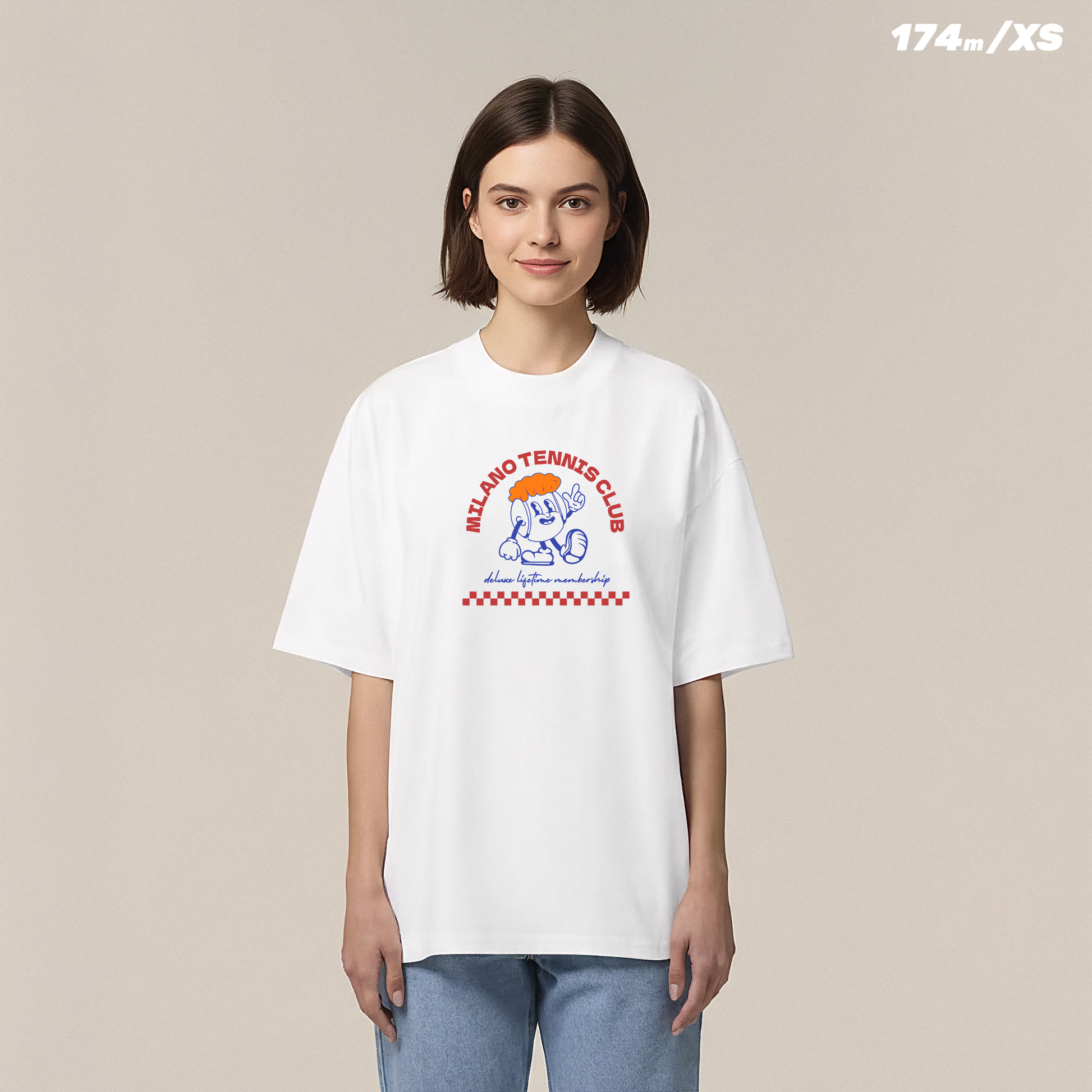 Careful! This tee has an oversized fit. For example, a man who is 185 cm tall would typically wear a size M. If you are a big man, consider choosing size L. For women, someone around 165 cm tall would usually wear size XS, though XS may also fit women up to 175 cm. Read the size guide!