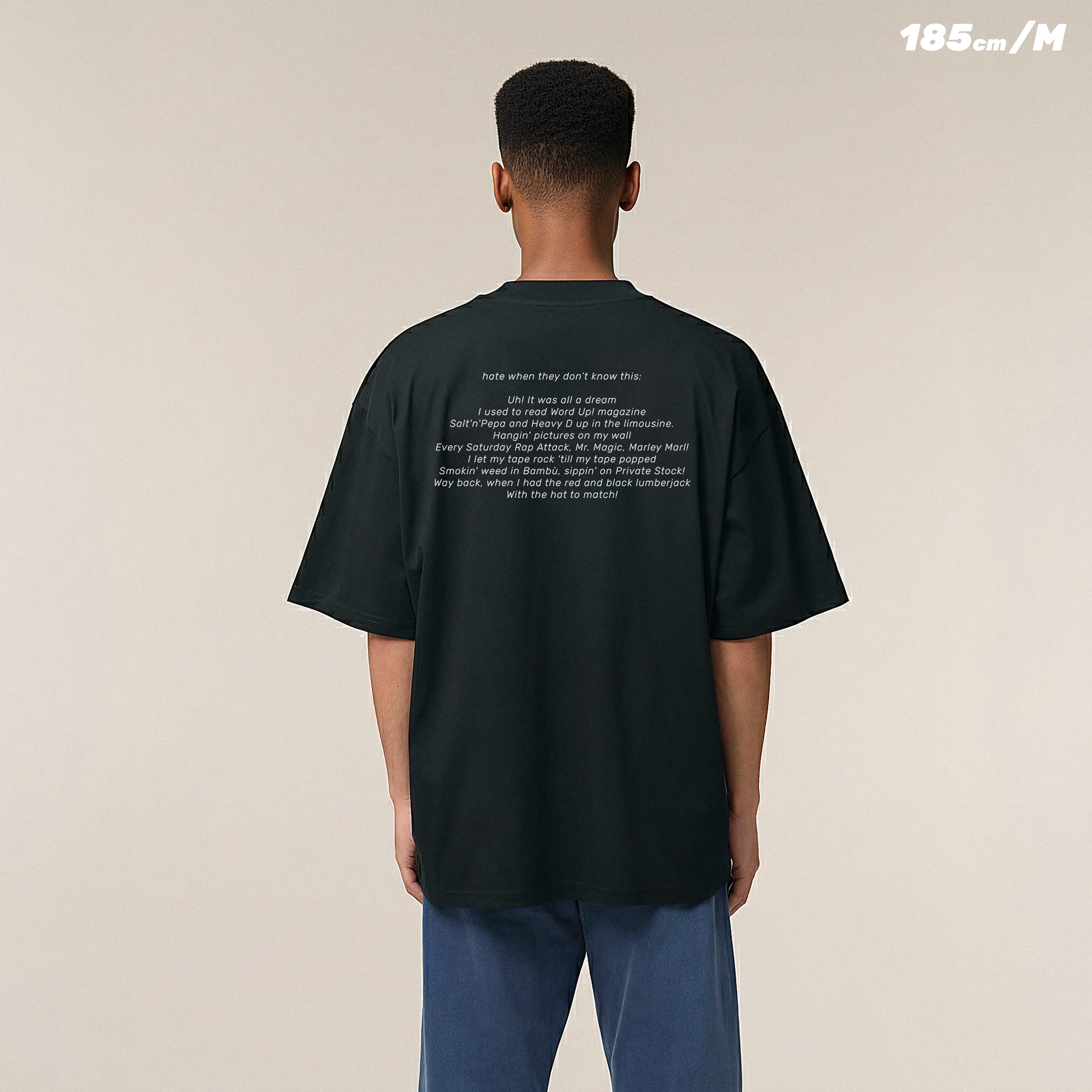 Careful! This tee has an oversized fit. For example, a man who is 185 cm tall would typically wear a size M. If you are a big man, consider choosing size L. For women, someone around 165 cm tall would usually wear size XS, though XS may also fit women up to 175 cm. Read the size guide!