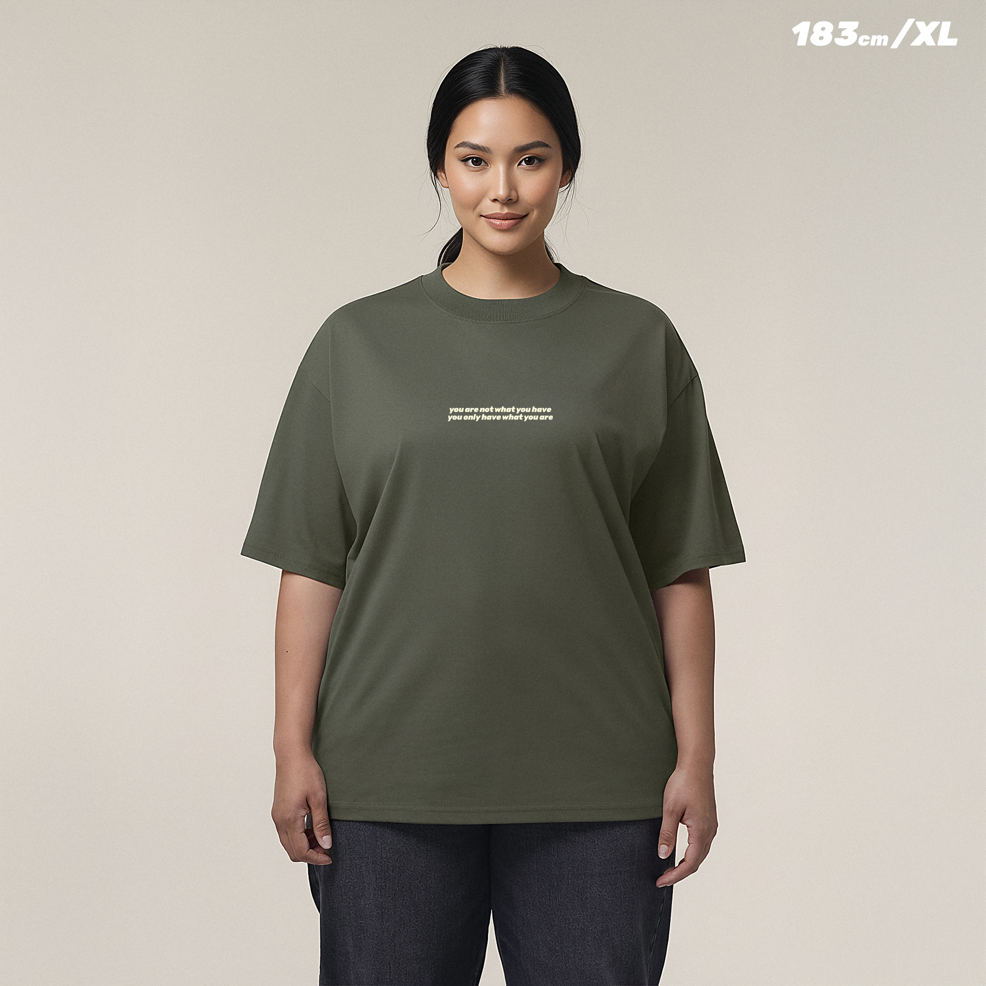 Careful! This tee has an oversized fit. For example, a man who is 185 cm tall would typically wear a size M. If you are a big man, consider choosing size L. For women, someone around 165 cm tall would usually wear size XS, though XS may also fit women up to 175 cm. Read the size guide!